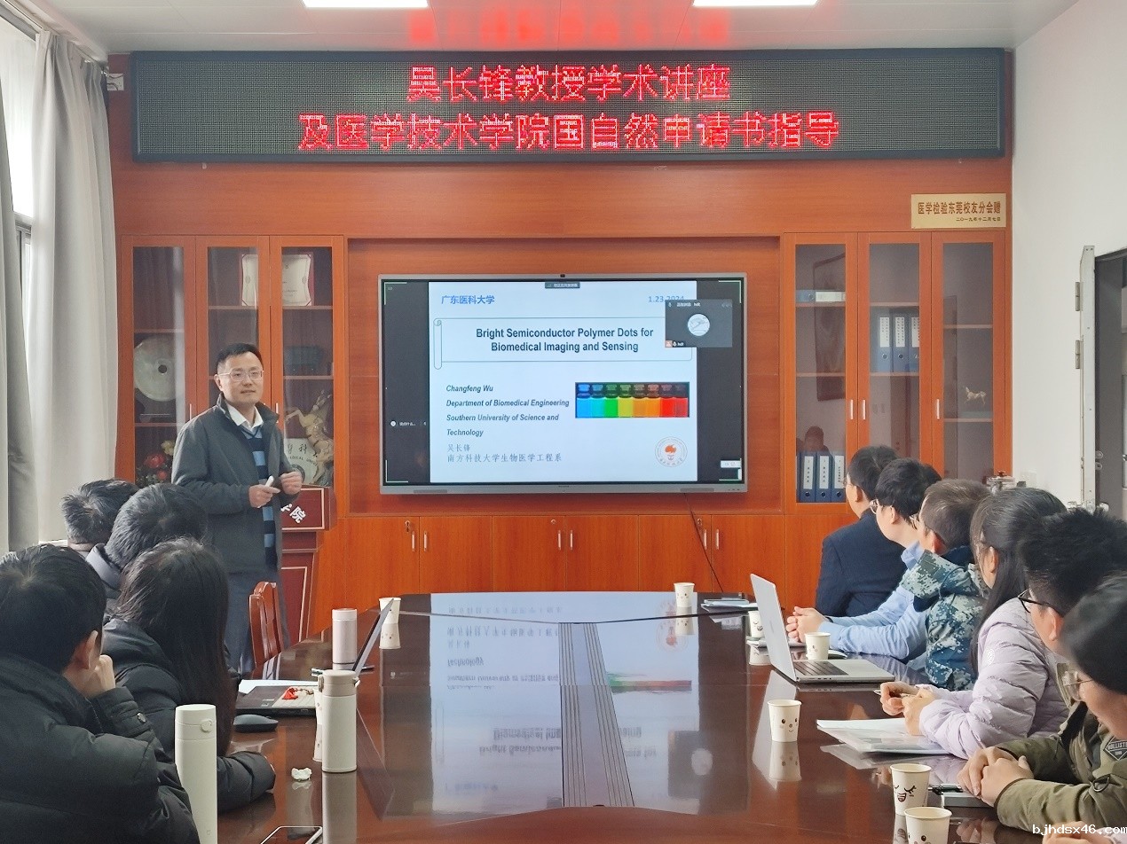 2024年1月23日,南方科技大学吴长锋教授受邀来我院举办学术讲座,并指导星空体育下载两位教师的国自然申请书。学术会议由星空体育下载皮江博士主持。星空体育下载、生物医学工程学院、药学院、广东省医学分子诊断重点实验室等单位的部分师生参加了本次交流座谈会。
