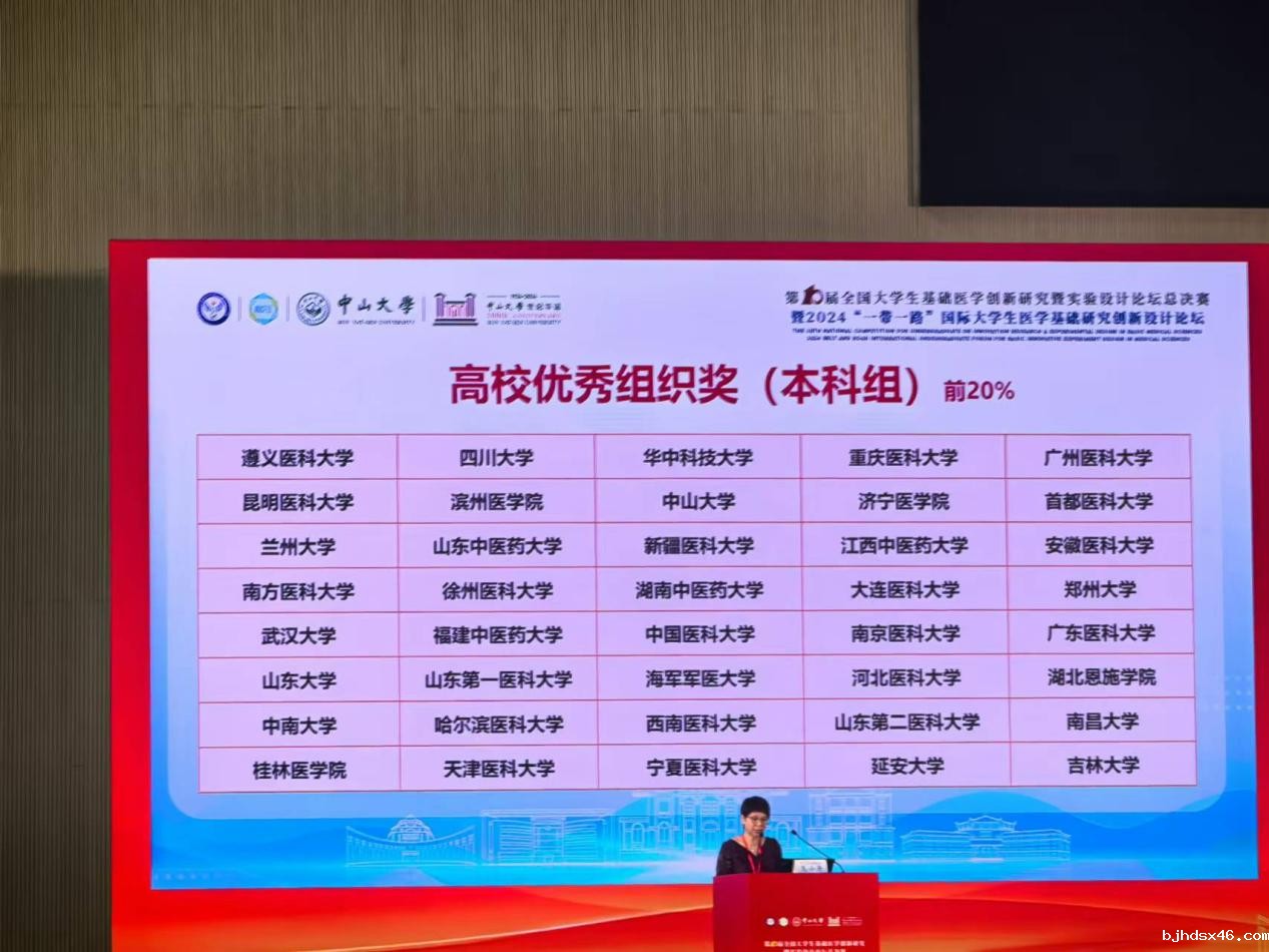 8月22日-24日,第十届全国大学生基础医学创新研究暨实验设计论坛总决赛暨2024“一带一路”国际大学生医学基础研究创新设计论坛在中山大学南校园落幕。本届大赛共有来自21个国家、204所高校的876支队伍、3216名师生参赛。